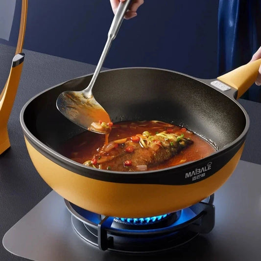 Premium Non‑Stick Rock Cast Wok with Lid & Steamer