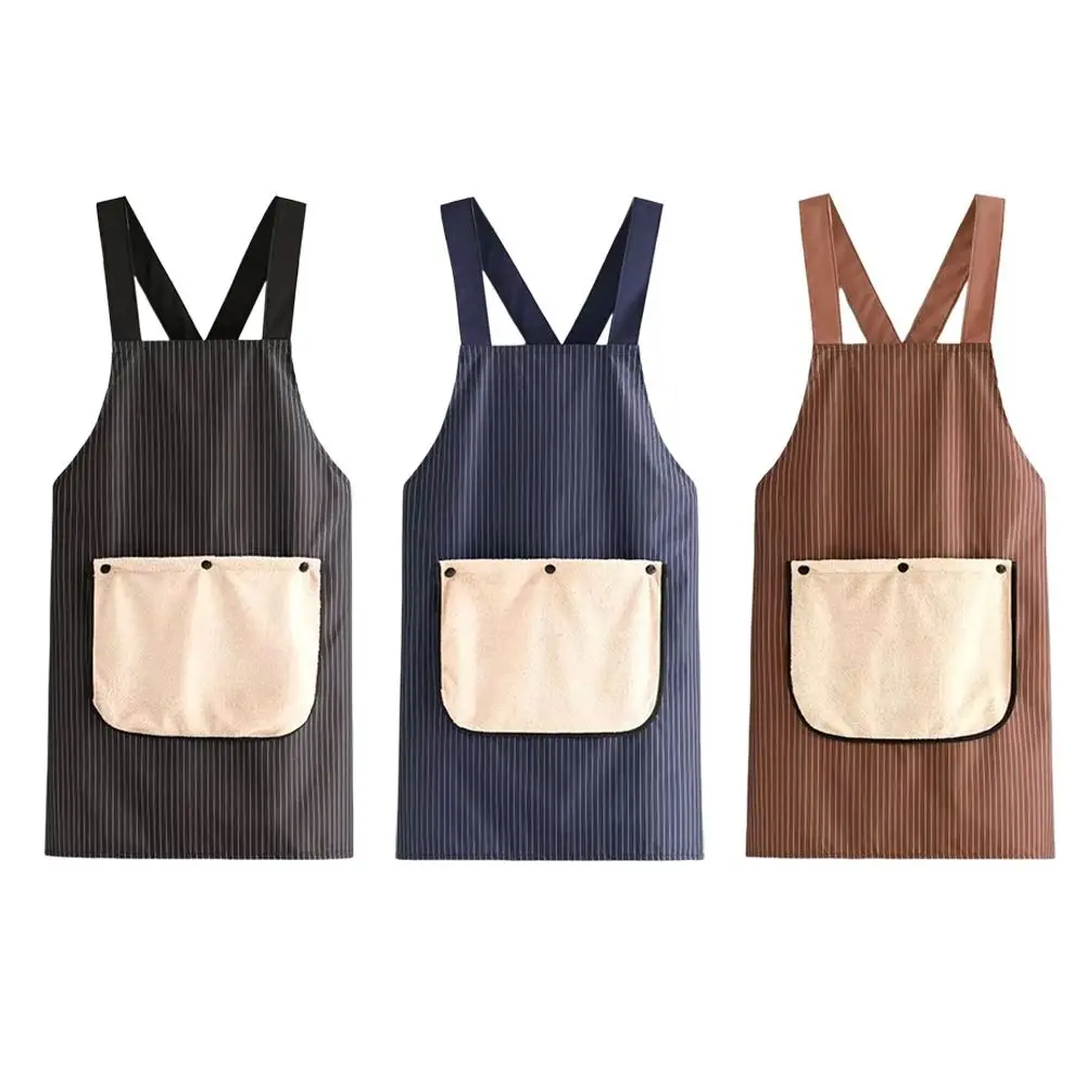 Stay clean and comfortable while cooking or baking with this waterproof kitchen apron. Made from lightweight polyester fabric, it offers full coverage and features a removable hand towel and spacious front pockets for ultimate convenience in the kitchen or restaurant.