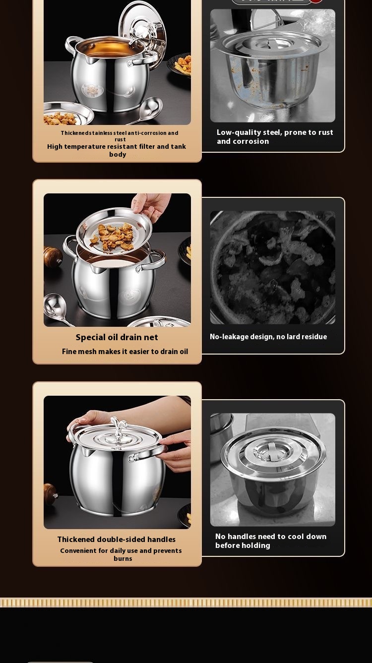 This heavy-duty stainless steel lard tank revolutionizes oil storage with its built-in filtration system and triple-layer design. Perfect for home chefs who render pork fat or reuse cooking oil, it keeps your kitchen cleaner and more organized.